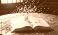 • Open book with colorful confetti exploding in celebration on wooden table