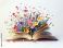 • An open book with colorful flowers bursting forth on a clean white background, symbolizing creativity.