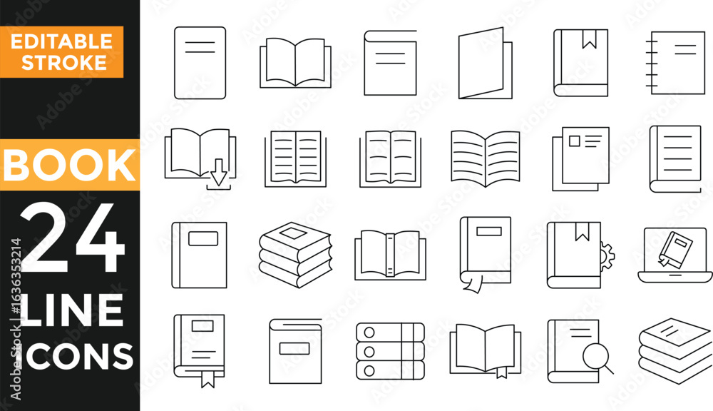 Plakat do Księgarni - Book line icon set. Set of 24 outline icons related to the book. Library book symbol. Open and... #1636353214