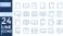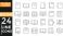 • Book line icon set. Set of 24 outline icons related to the book. Library book symbol. Open and close textbook. Editable stroke.