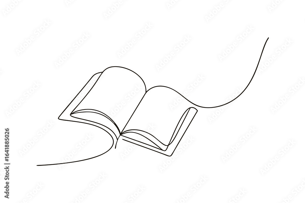 Plakat do Księgarni - Minimalist single line drawing an open book with flowing lines vector #1641885026