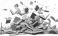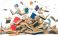 • Many open books flying and falling in a chaotic explosion of knowledge and learning