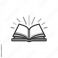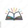• Illustration of an open book with colorful pages and radiating light beams on a white background