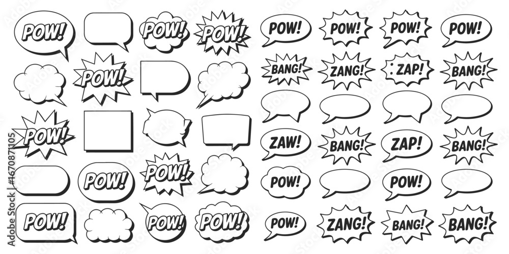 • Collection of comic book speech bubbles and sound effects, Comic Book Sound Effects - Collection of vintage comic book speech bubbles and sound effects
