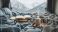 • Cozy bed with open book and hot chocolate overlooking snowy mountains