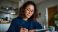 Plakat do Księgarni - Young woman in eyeglasses working on laptop in kitchen. #1712379770