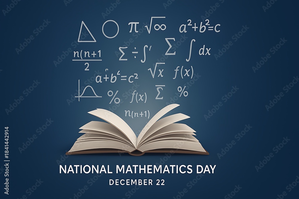 • National mathematics day celebration featuring an open book and fundamental formulas