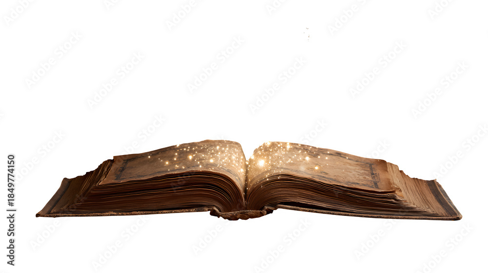 Plakat do Księgarni - Open antique book with magical light, isolated on transparent background #1849774150