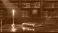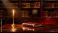 • A lit candle on a wooden desk in a library with bookshelves, a globe, and an old book