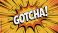 • Vibrant comic book style explosion with 'gotcha' text in bold white letters on dynamic orange and yellow background