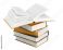 • Stack of books and an opened book atop isolated on white