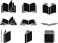 • silhouette Open black book side perspective drawing icons minimal back book notebook on the upside down outline laying