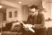 Plakat do Księgarni - Adult male businessman reading a book at home. #562063462