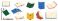 • Open books set. Doodle colorful book covers with hand drawn letters, study literature concept for college education. Vector flat set