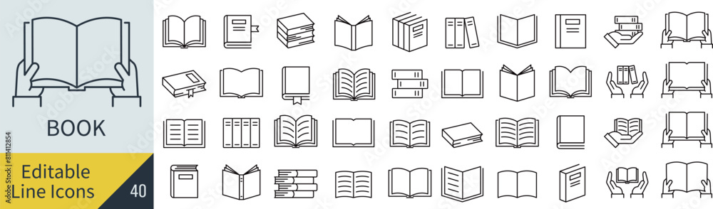 Plakat do Księgarni - 線の編集ができるベクターの本のアイコンセット(アウトライン化していない) #811412854