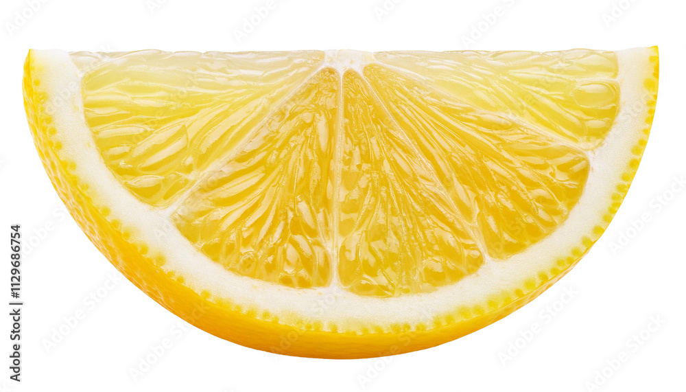 • Juicy lemon slice isolated on transparent background showing refreshing pulp