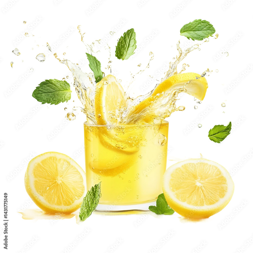 Plakat do Kuchni - refreshing lemon juice splash liquid explosion with mint leaves on transparent background.png #1431775149