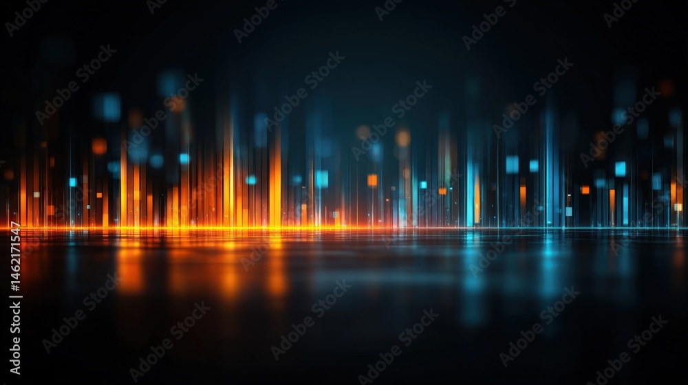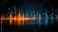 Abstract digital soundwave pattern with glowing orange and blue bars on a dark background, evoking technology and data visualization.