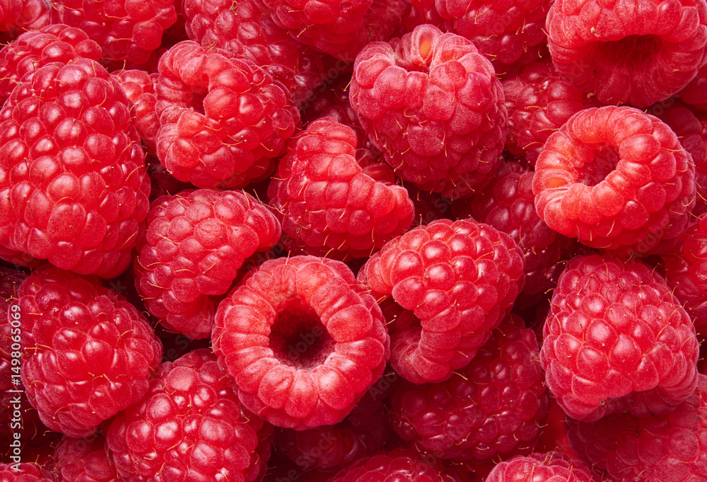 Plakat do Kuchni - Top view fresh raspberries close-up. Raspberries as background. #1498065069