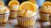 • Close-up of orange-topped cupcakes with creamy frosting.