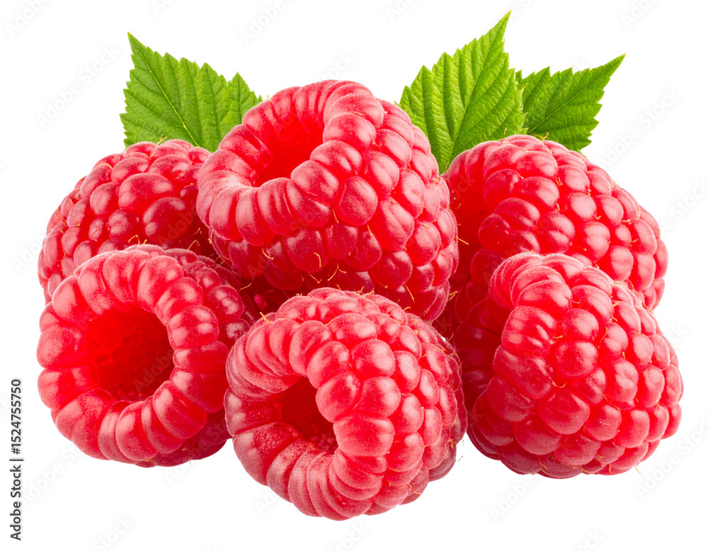 • Fresh Red Raspberries with Fine Texture, Transparent Background.PNG
