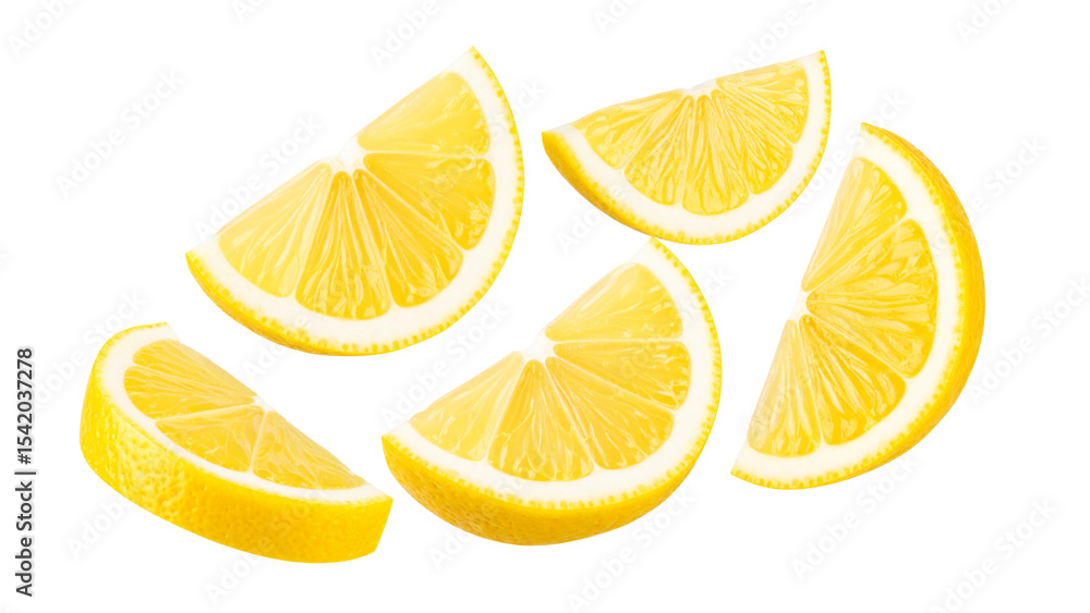 Plakat do Kuchni - Falling lemon slice, isolated on white background full depth of field #1542037278