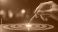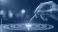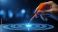 • Hand aiming an orange dart directly at the glowing blue center of a target, symbolizing success and goals