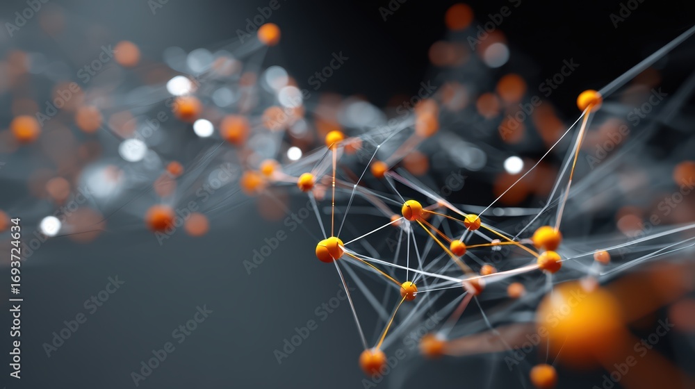 • Vibrant Digital Network Symbols on a Dark Backdrop Perfect for Tech and Conference Themes, Inspiring Innovation and Progress.