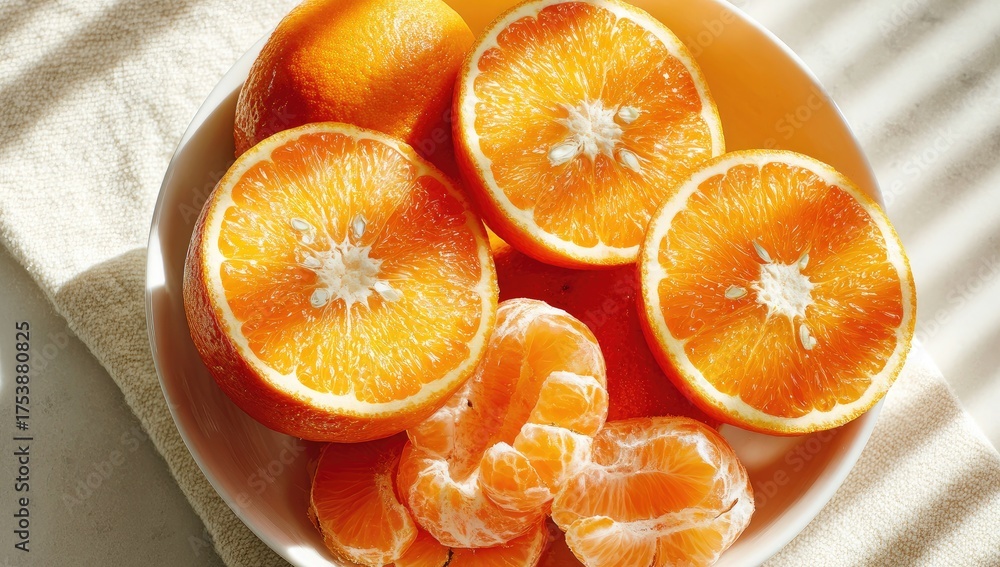 Plakat do Kuchni - Fresh orange slices and segments in white bowl #1753880825