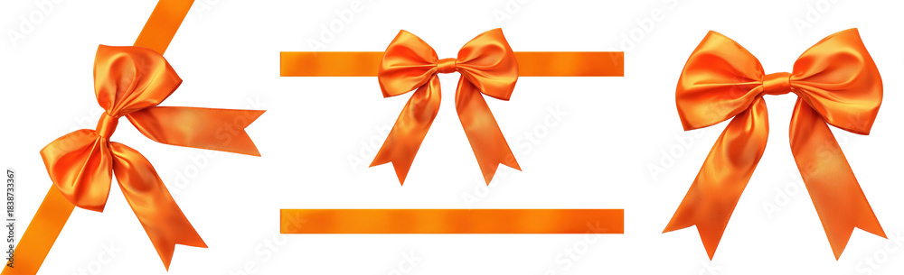 • Three orange ribbons with bows on a transparent background png