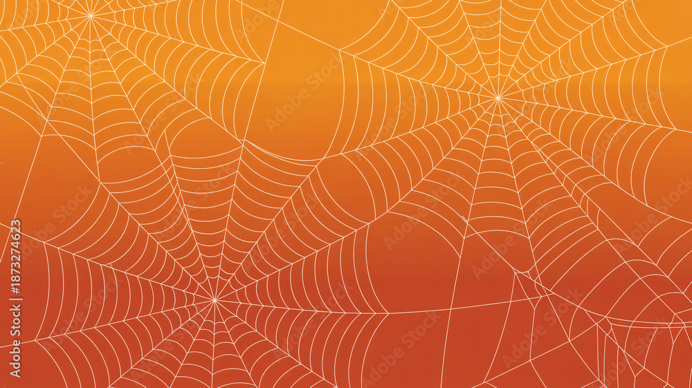 • Intricate spider web on vibrant orange background for Halloween