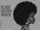 Profile of a Black woman with tribal face paint and natural afro for Black History Month, orange background with ethnic patterns.