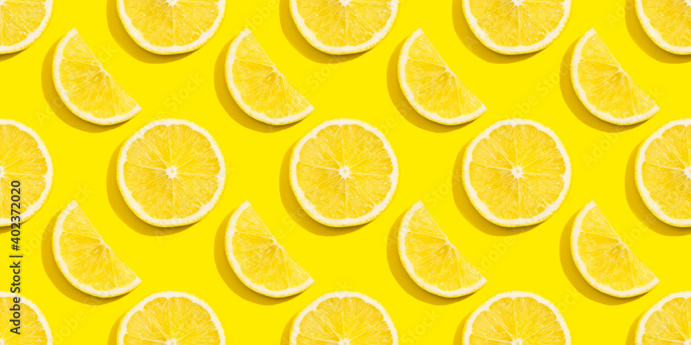 Plakat do Kuchni - Seamless pattern of lemon slices on a yellow background. #402372020