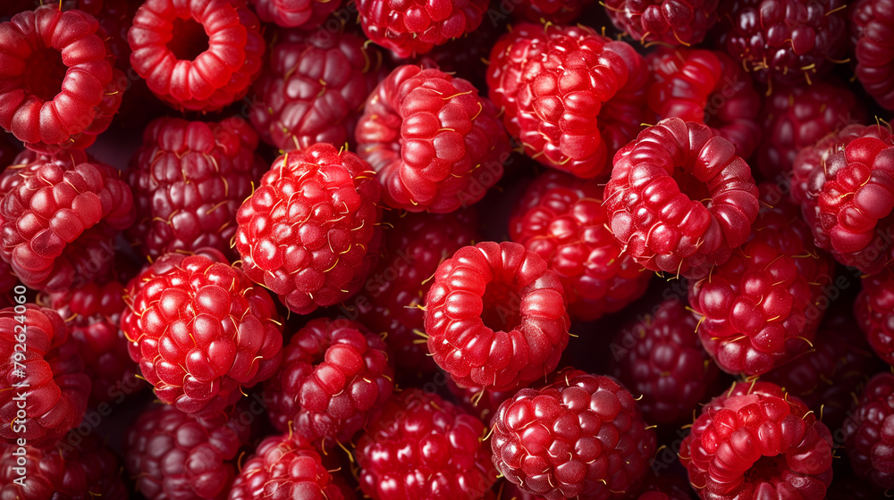 Plakat do Kuchni - Fresh ripe raspberries pattern background for market. Close-up raspberry texture for sale poster... #792624060