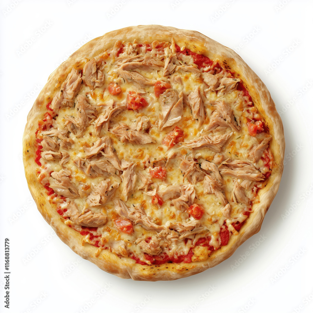 Plakat do Pizzerii - a tuna pizza on a plate on isolated white backgrounds #1168813779