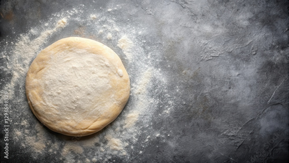 Plakat do Pizzerii - Raw pizza dough sheet stretched out on a granite countertop, awaiting its next transformation ,... #1296598329