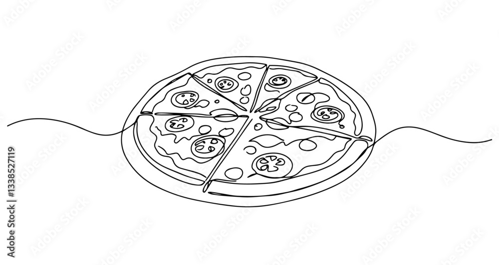 Plakat do Pizzerii - whole pizza fast food italian meal vector monoline one line line art #1338527119