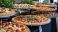 • Gourmet pizza display for catering event with various toppings and fresh ingredients, creating inviting atmosphere