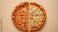 Plakat do Pizzerii - pizza perfectly divided in half in top view. on beige background. #1394295762
