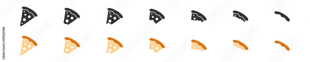 • Pizza icon set on white background. Food icon in vector design style. Bite pizza. Eaten pizza sign. Consumption food