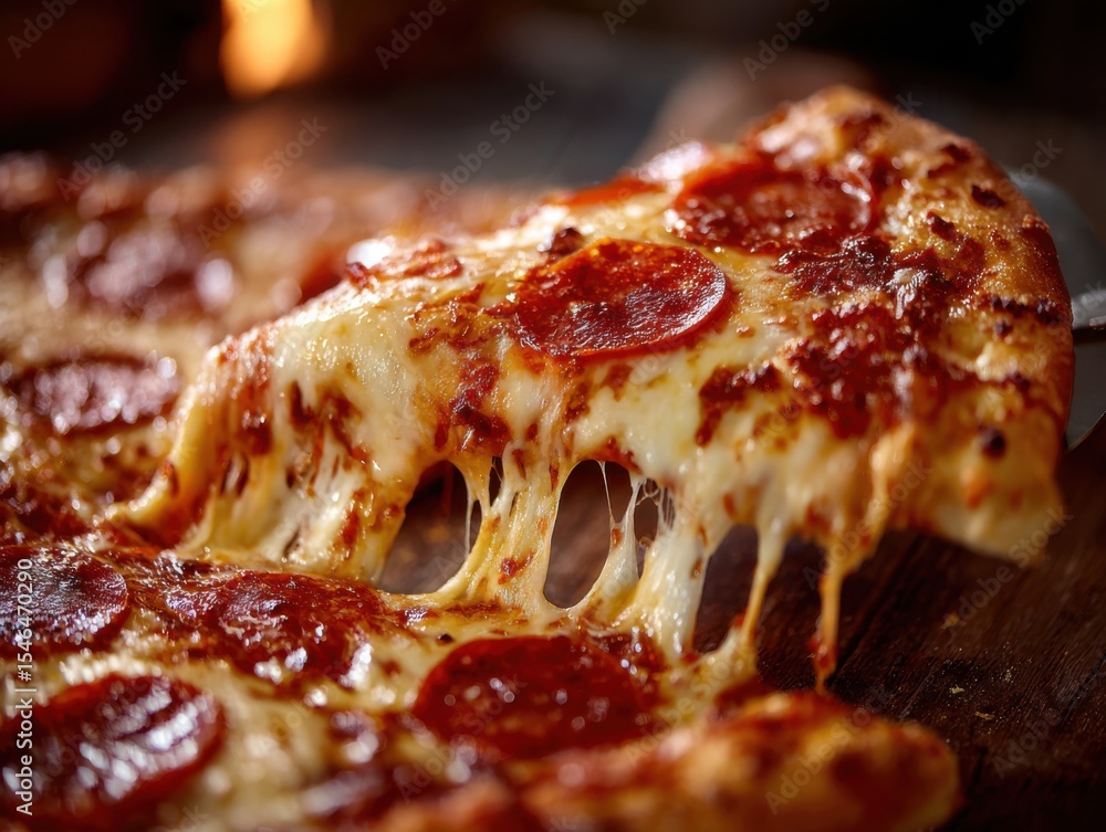Plakat do Pizzerii - Savoring delicious pepperoni pizza italian restaurant food photography cozy atmosphere close-up... #1546470290