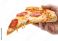 • Hand holding a slice of pepperoni pizza isolated on transparent background