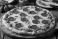 Plakat do Pizzerii - A delicious homemade pizza topped with pepperoni and fresh basil leaves sits on a wooden board,... #1617551990