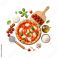 • Delicious Margherita Pizza Composition Fresh Ingredients Overhead Italian Cuisine Tomatoes Mozzarella Basil Olive Oil and Flour Culinary Still Life