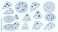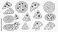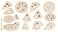 • Set of hand drawn pizza illustrations vector. Black and white doodle style pizza slices and whole pies for restaurant menus, food delivery, and packaging.