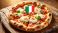 • Authentic Italian Margherita pizza with melted mozzarella cheese, tomato sauce, fresh basil leaves and Italian flag on rustic wooden board traditional Neapolitan food concept