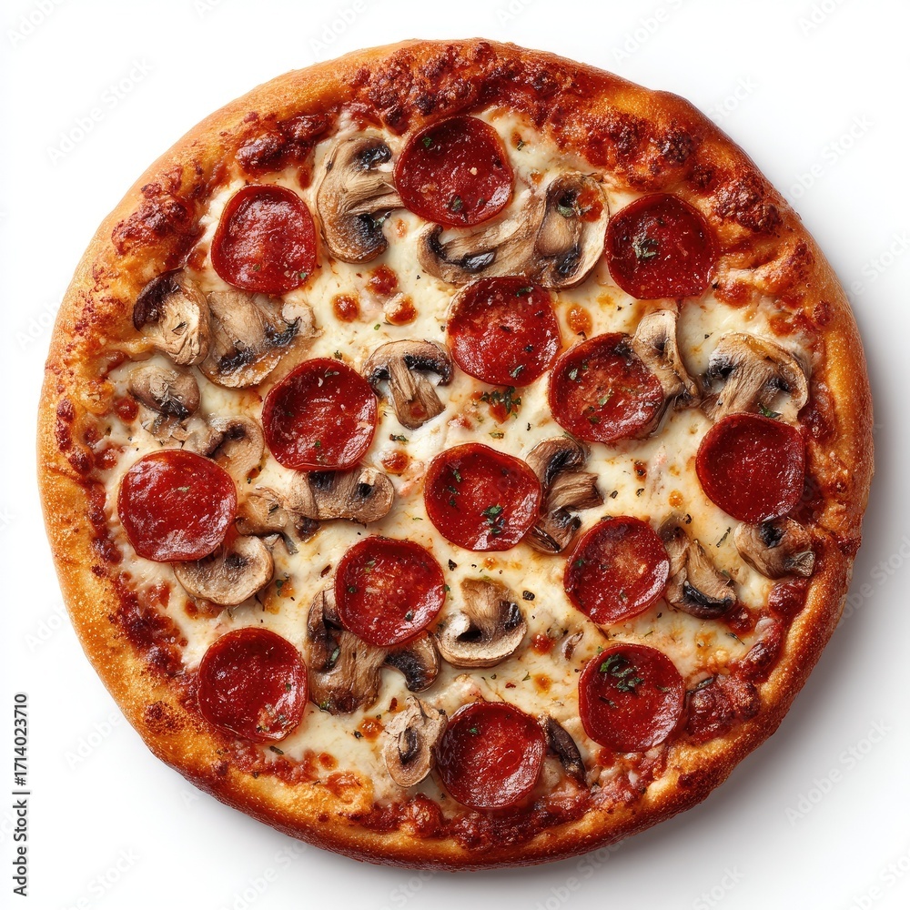 Plakat do Pizzerii - Round pizza with pepperoni and mushrooms (2) #1714023710