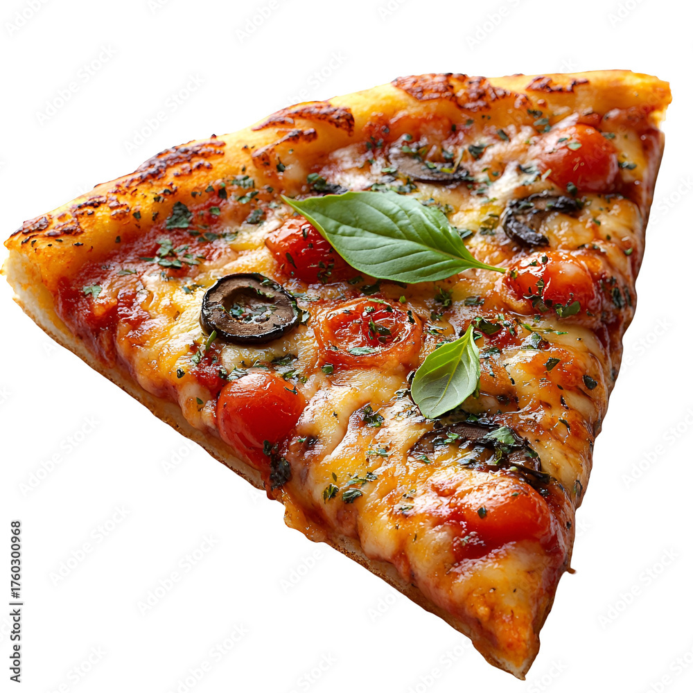 Plakat do Pizzerii - Appetizing pizza slice with toppings ready to eat #1760300968