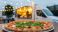Plakat do Pizzerii - Delicious freshly baked pizza with arugula served outdoors near a food truck at dusk #1768240527