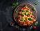 Plakat do Pizzerii - Festive pizza shaped like a Christmas tree, on a wooden board. Fresh basil, tomatoes, and... #1781202314
